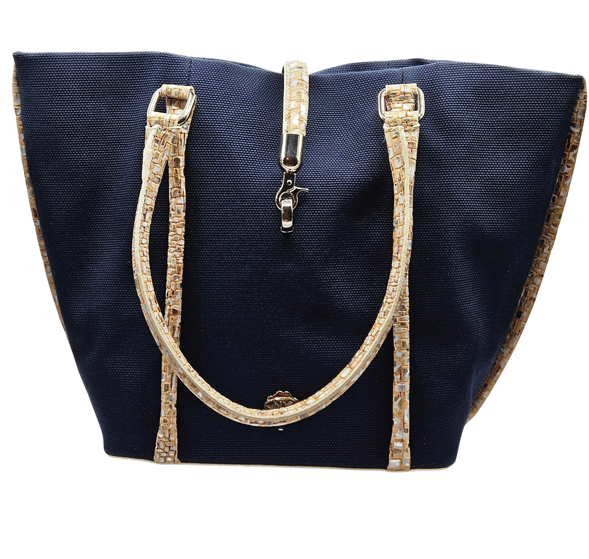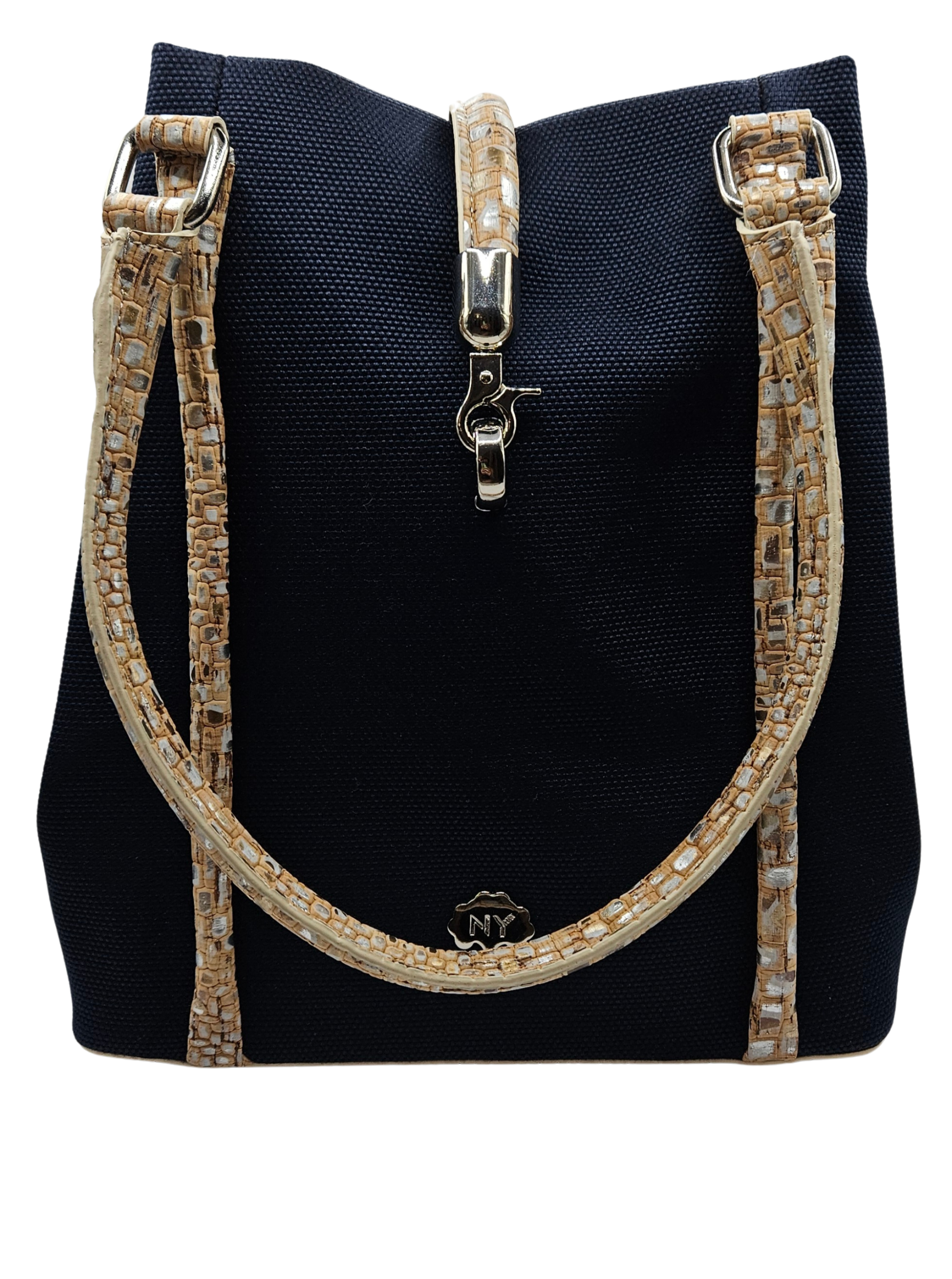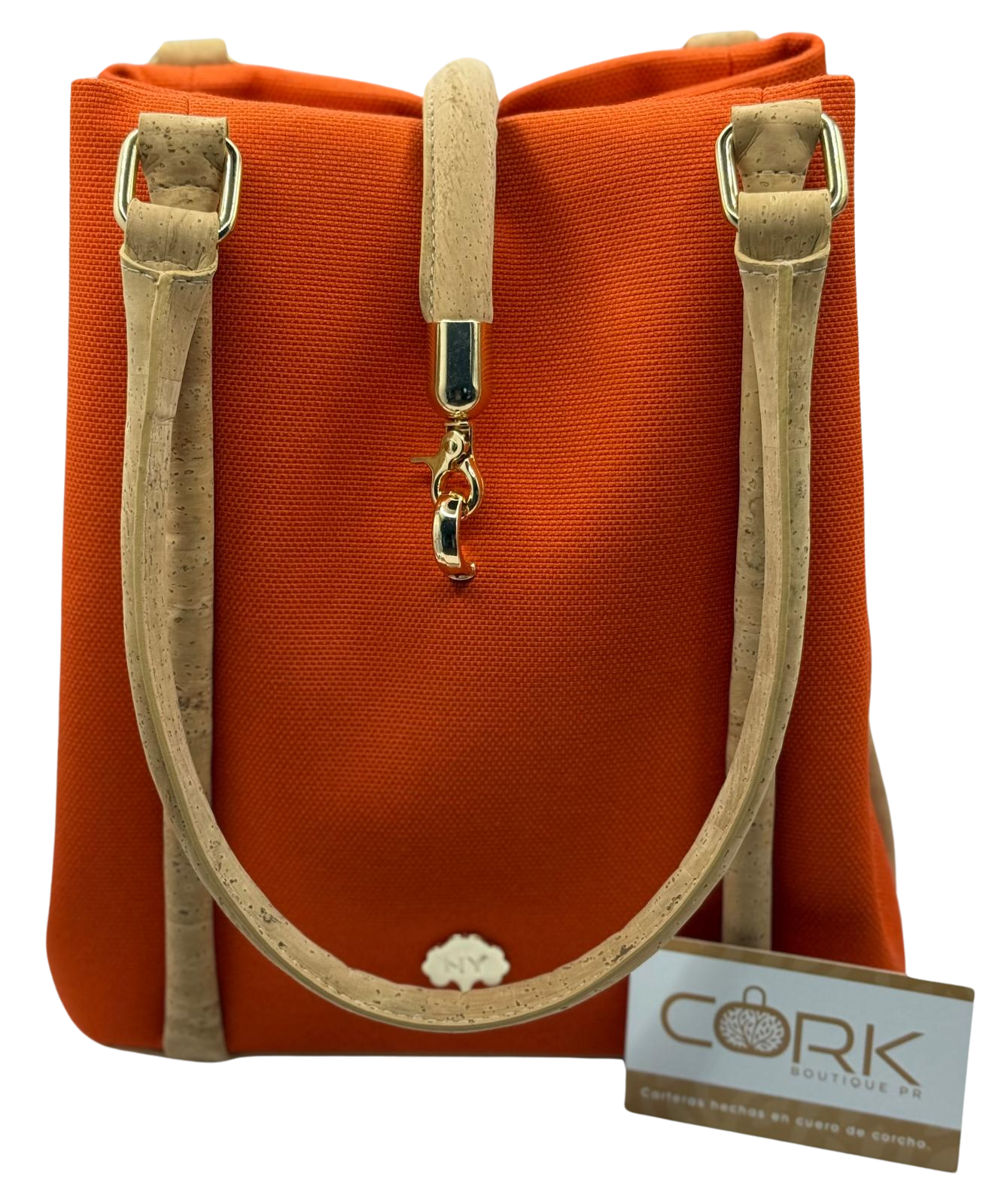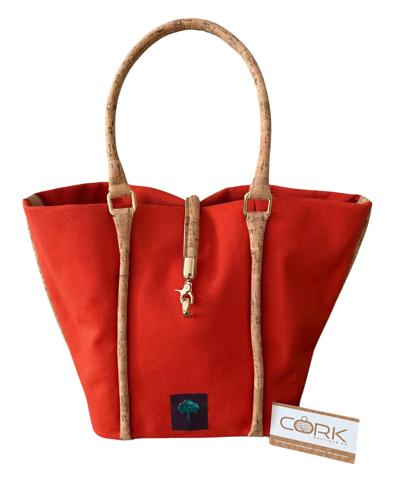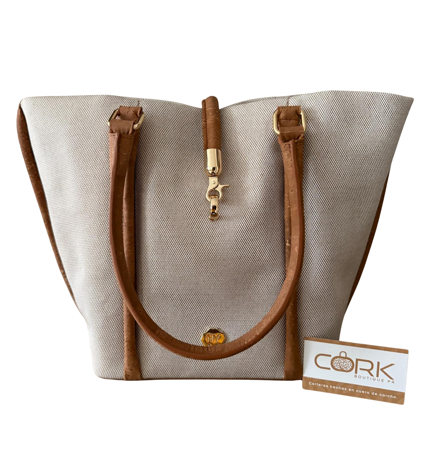 La tela de corcho está hecha de corteza de alcornoque y es un material totalmente natural, vegano y sostenible. El alcornoque deja su corteza cada 9 años y se recolecta separándolo del árbol mediante métodos especiales. Mientras se realiza este proceso, el árbol nunca se corta y este proceso no daña el árbol de ninguna manera. Por el contrario, la recolección regular del alcornoque permite prolongar la vida del árbol, que vive una media de más de 200 años. El tejido de corcho es además un tejido impermeable, ligero, suave al tacto sedoso, hipoalergénico y antibacteriano.
