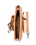 La tela de corcho está hecha de corteza de alcornoque y es un material totalmente natural, vegano y sostenible. El alcornoque deja su corteza cada 9 años y se recolecta separándolo del árbol mediante métodos especiales. Mientras se realiza este proceso, el árbol nunca se corta y este proceso no daña el árbol de ninguna manera. Por el contrario, la recolección regular del alcornoque permite prolongar la vida del árbol, que vive una media de más de 200 años. El tejido de corcho es además un tejido impermeable, ligero, suave al tacto sedoso, hipoalergénico y antibacteriano.