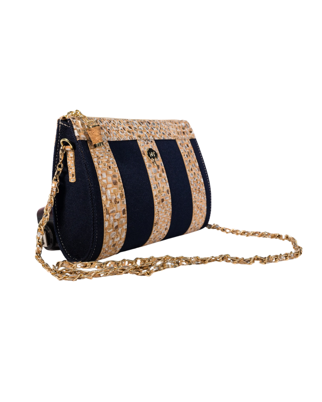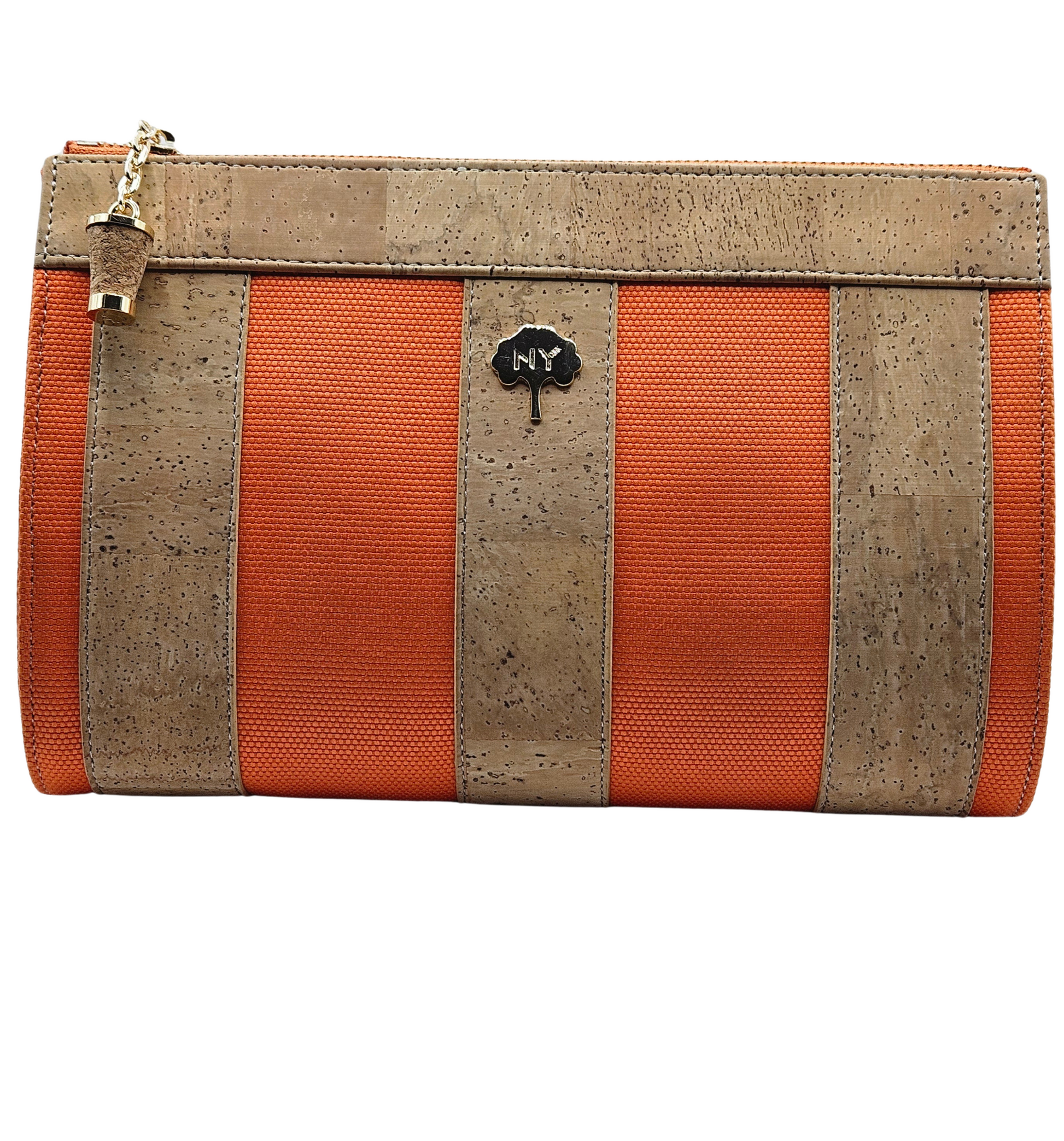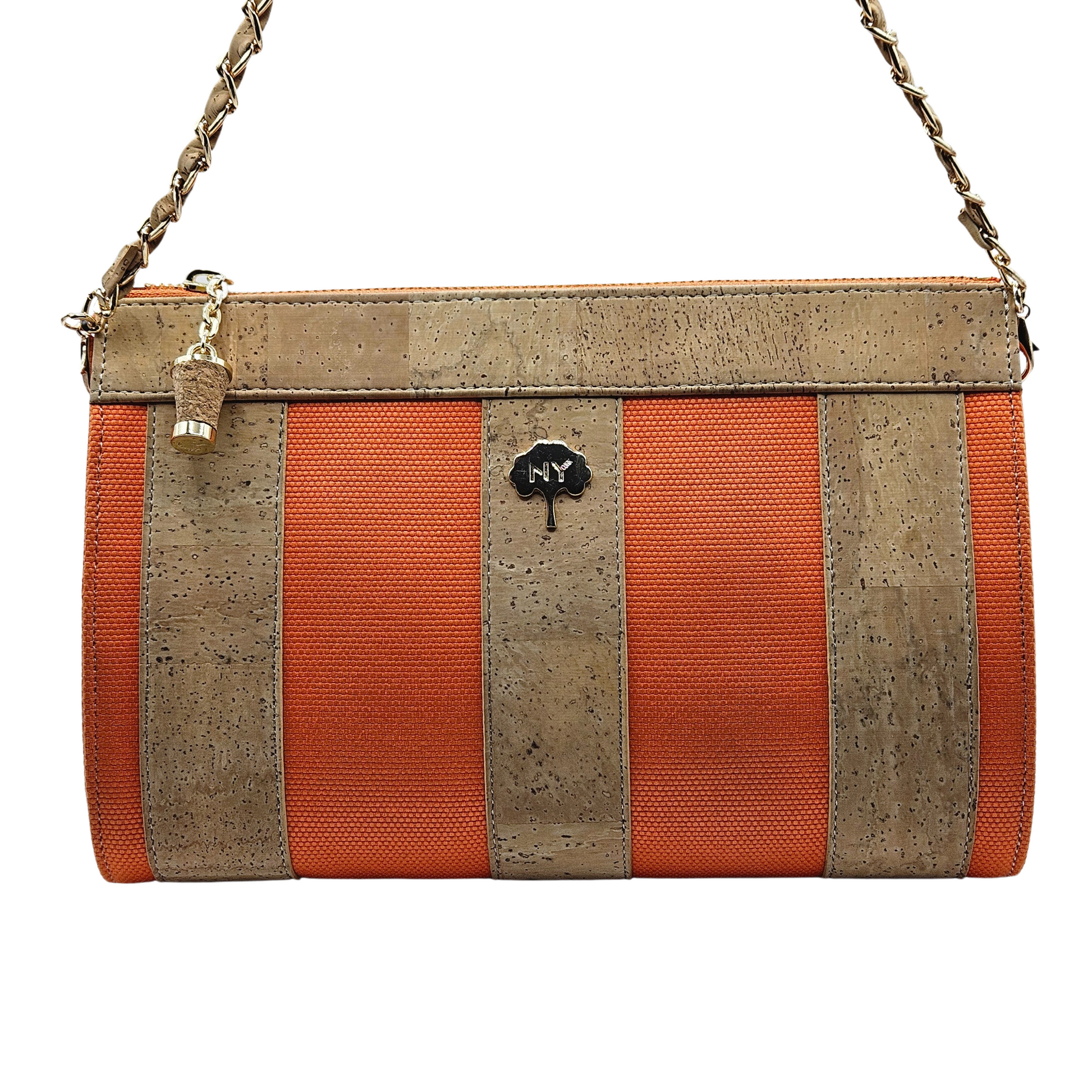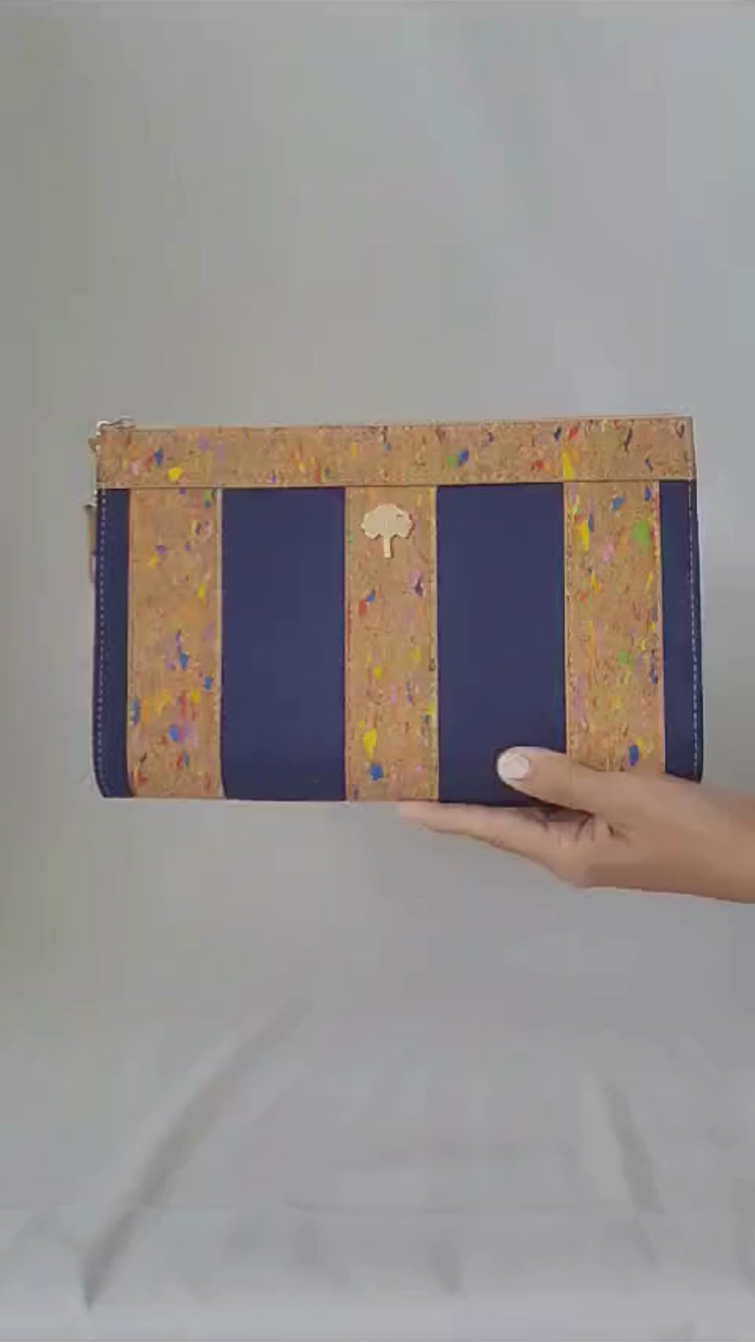 La tela de corcho está hecha de corteza de alcornoque y es un material totalmente natural, vegano y sostenible. El alcornoque deja su corteza cada 9 años y se recolecta separándolo del árbol mediante métodos especiales. Mientras se realiza este proceso, el árbol nunca se corta y este proceso no daña el árbol de ninguna manera. Por el contrario, la recolección regular del alcornoque permite prolongar la vida del árbol, que vive una media de más de 200 años. El tejido de corcho es además un tejido impermeable, ligero, suave al tacto sedoso, hipoalergénico y antibacteriano.