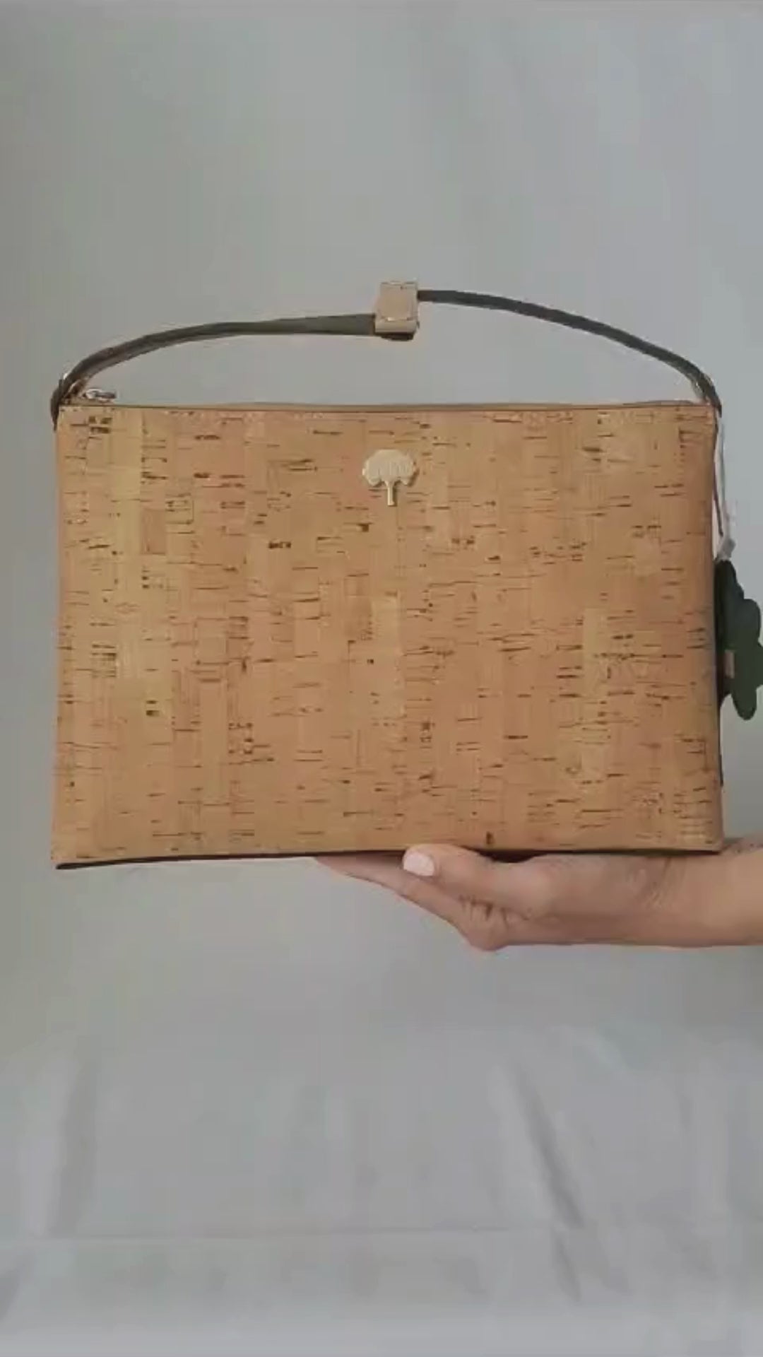 The zip closure ensures your belongings are safe, while the interior pockets provide practical functionality. Made from 100% eco-friendly and animal-friendly cork leather, this bag is both fashion-forward and environmentally conscious.